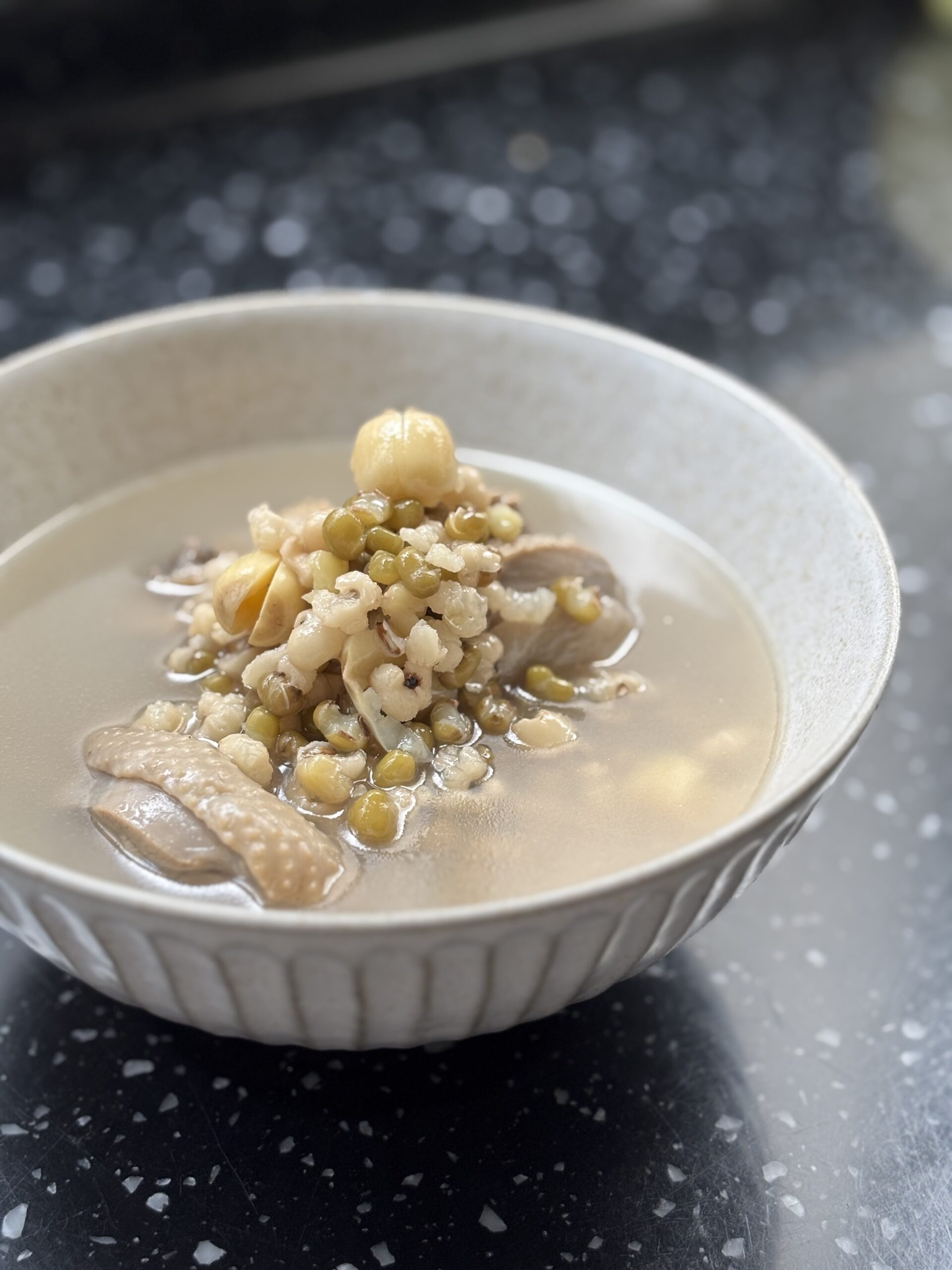 (如果喜歡綠豆薏仁保留較多原本的顆粒狀,煮雞肉時可以先加入湯就好,最後再加入綠豆和薏仁)